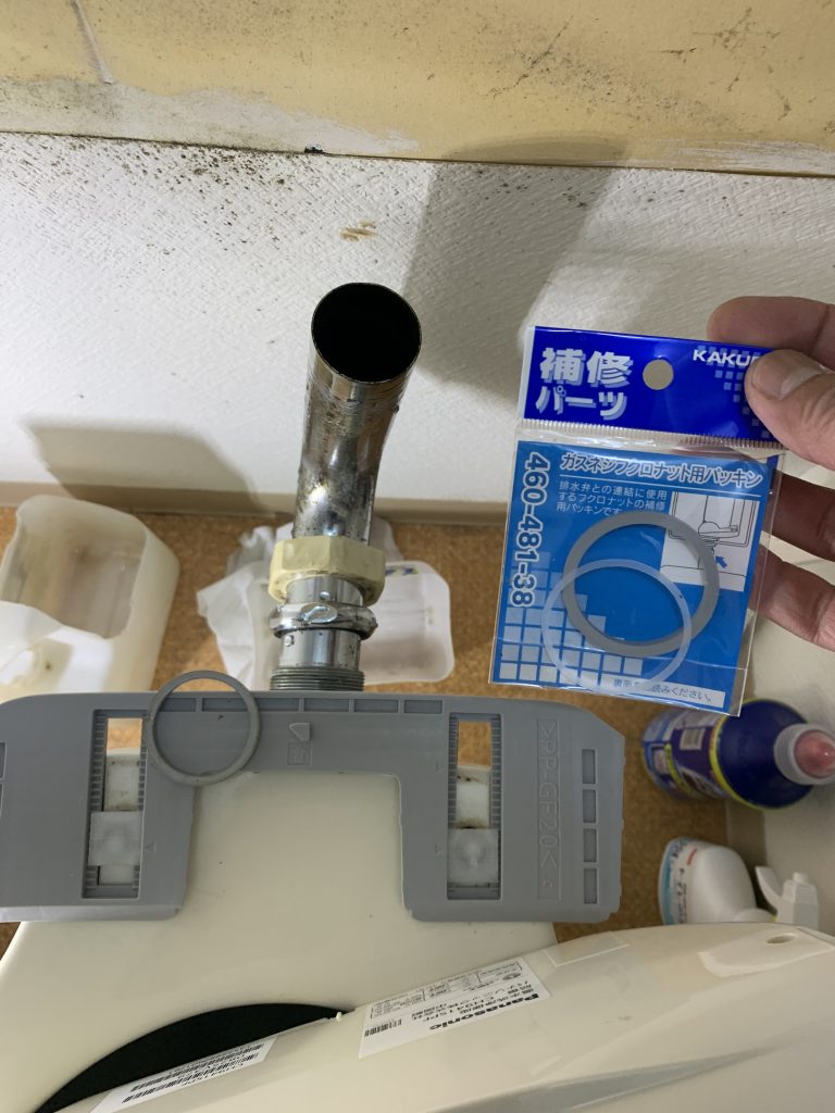 そこでようやくパッキンの交換ができるようになるので、交換をして再度逆の手順でタンクを取り付けなおしました。