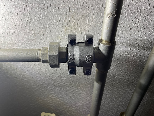 ボイラー下にある配管の一部から水が漏れており、現在は止水しているとのことでした。