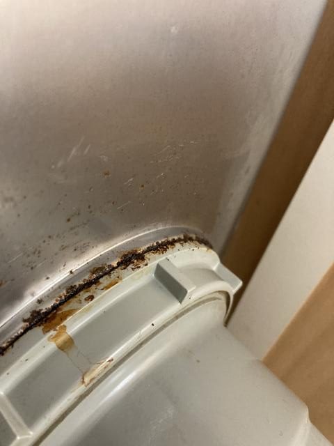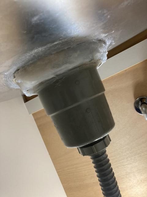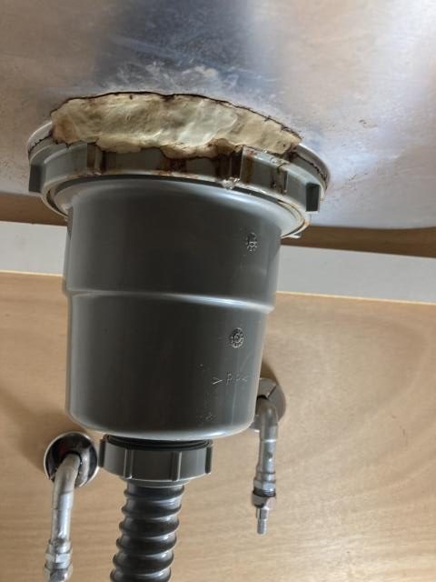 シンクとトラップの繋ぎ目が完全にサビており、パッキンの問題ではなくシンク自体が限界の状態でした。