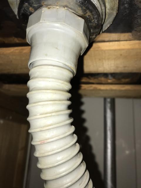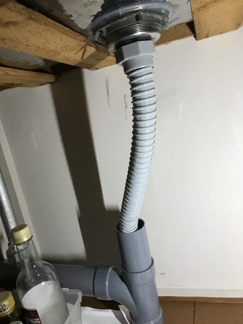 水漏れしている箇所は台所から排水管へと流れるホースの繋ぎ目で、使用すると少量ではありますが漏れていました。