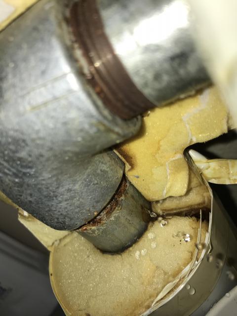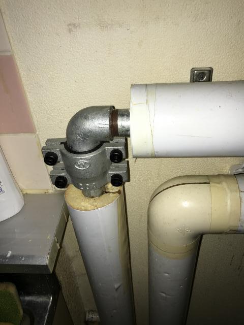 洗濯機を避けると台所に向かう給水管があり、被覆を剥がすと繋ぎ目から水が漏れ出していました。