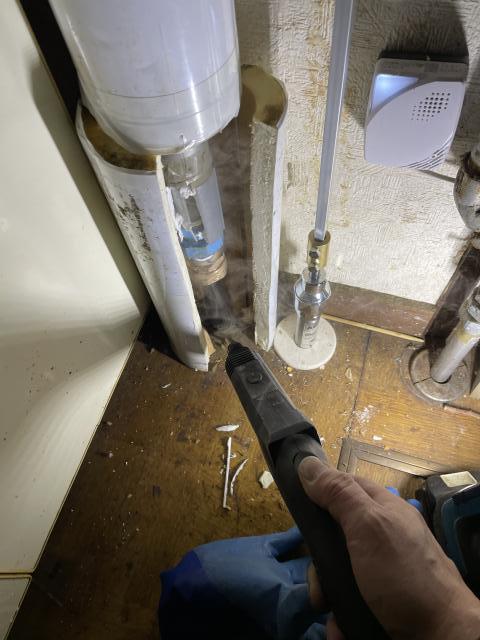 数日家を空けていたみたいで、念のため水抜きを行っていたようですが凍結して出なくなったようです。