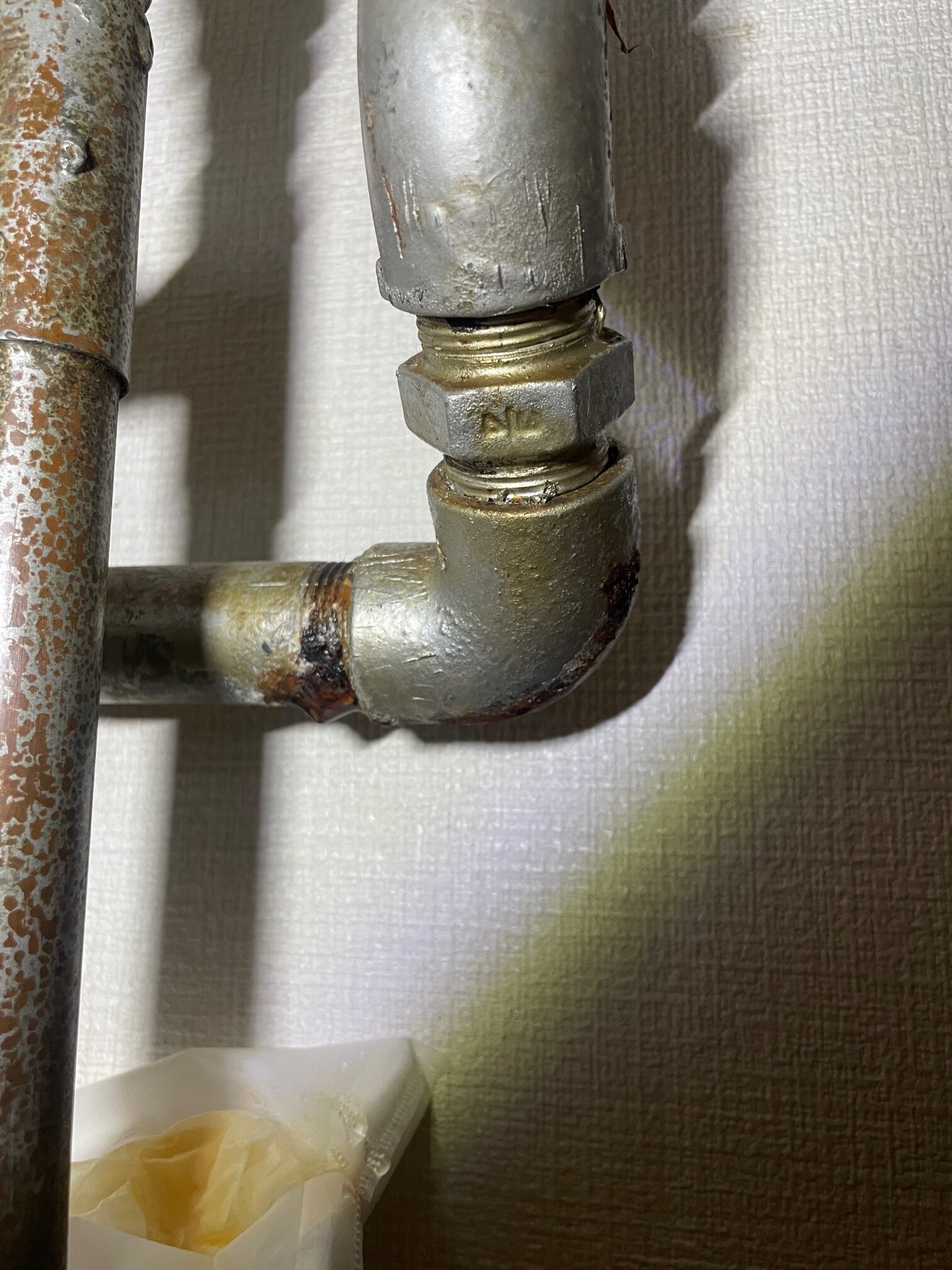台所上部の水道管(鉄管)からの水漏れとのことです。