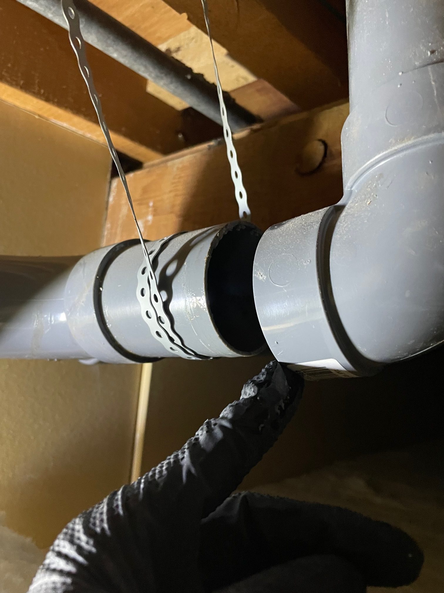 排水管専用の接着剤を使用し繋ぎ直し、排水テストを行い水漏れは改善されました。