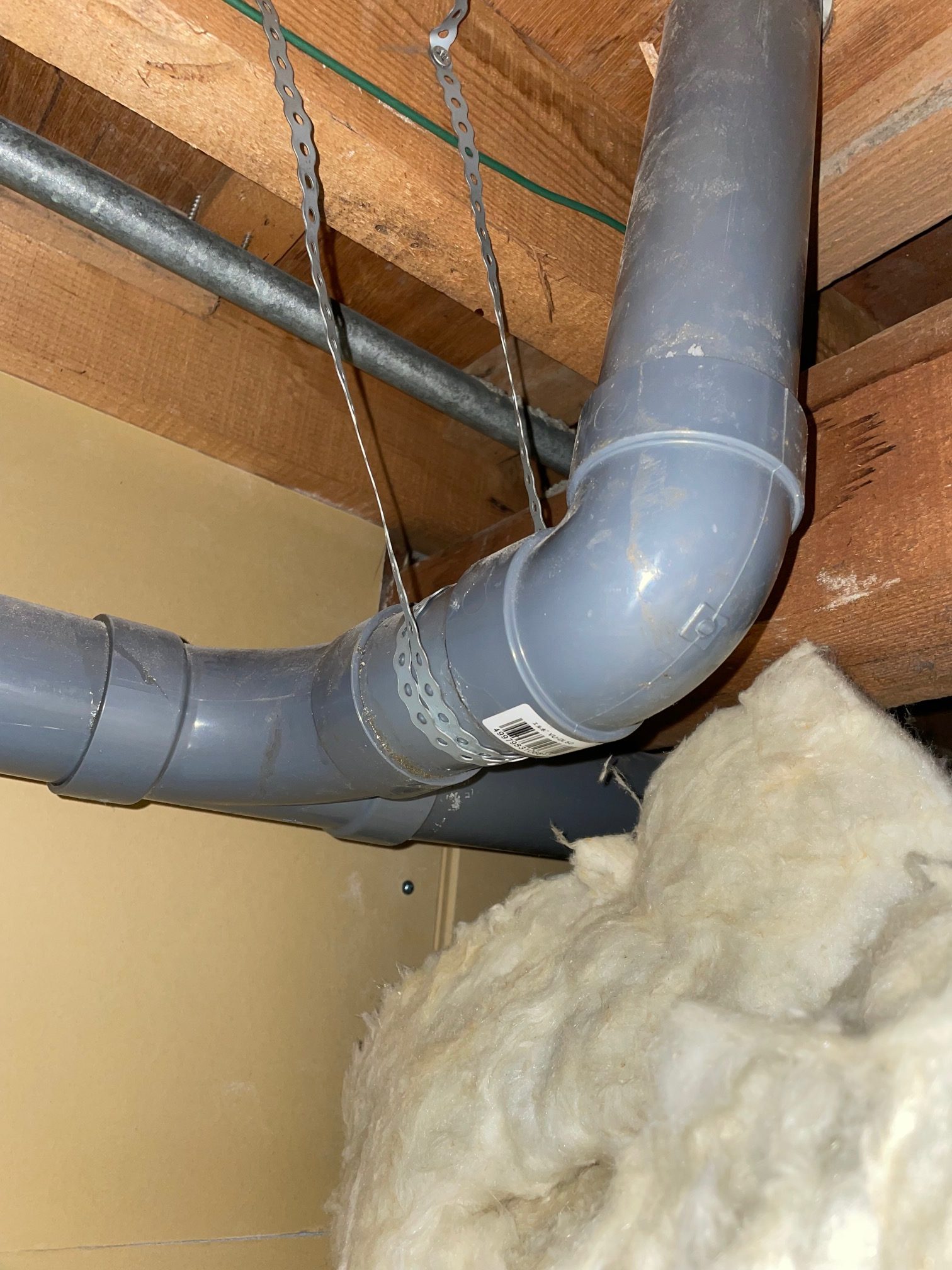 天井裏を確認させて頂いたところ、排水管に水滴がついていました。