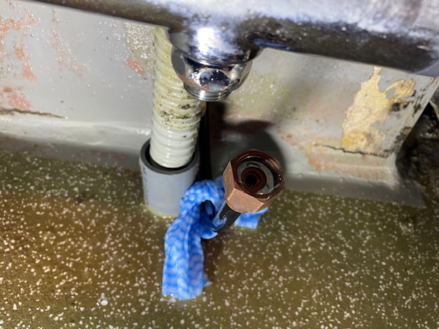 厨房に手洗い場があり、その足元にある配管から水が噴き出してきているとのご申告でした。