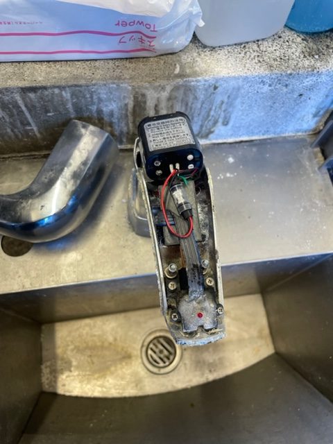 手洗い用の自動水栓から水が出てこなくなってしまったとのこと。
