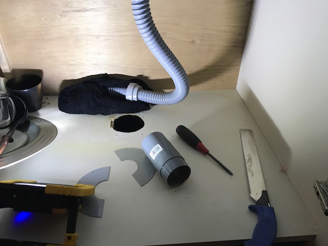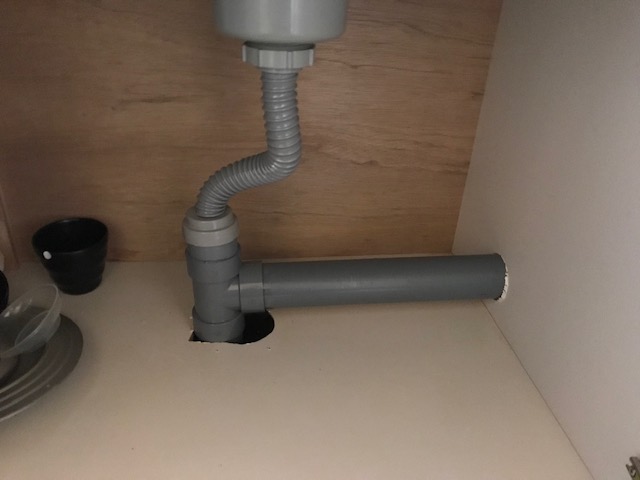 費用もなるべく抑えたいとの意向で、横にあるキッチン排水を分岐させて排水を作り上げました。
