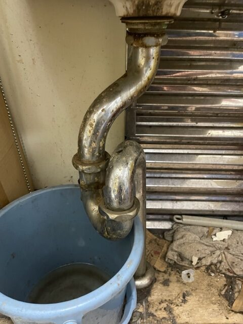 洗面台下排水管部分から水が漏れてしまっているとのこと。
