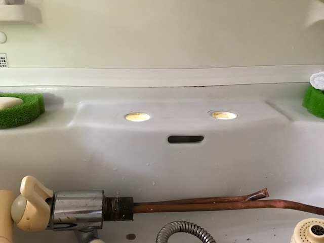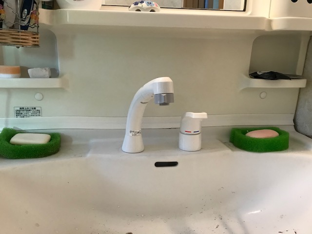 今日は提携会社からの依頼で洗面蛇口の本体から水漏れしているので見てほしいとの依頼で行って来ました。話を聞くとかれこれ18年使っている洗面台でシャワーホ―スが露出されているので邪魔だとも言っています。洗面台自体は使用出来て蛇口自体の交換で済むしシャワーホースも露出ではなく隠れるのでと話すと喜ばれていました。