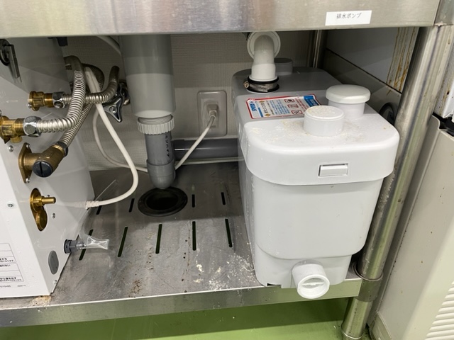 とある薬局に取り付けられている電動排水ポンプがあり、水を使用するとすぐ水位が上がってきてしまうとのことでした。