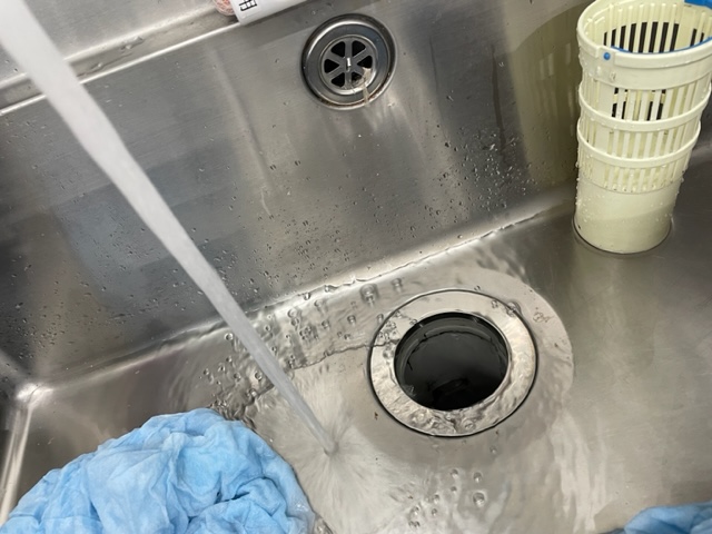 本日は、メーカー様からの依頼で流し台の排水の詰まりとのことでお伺いしました。