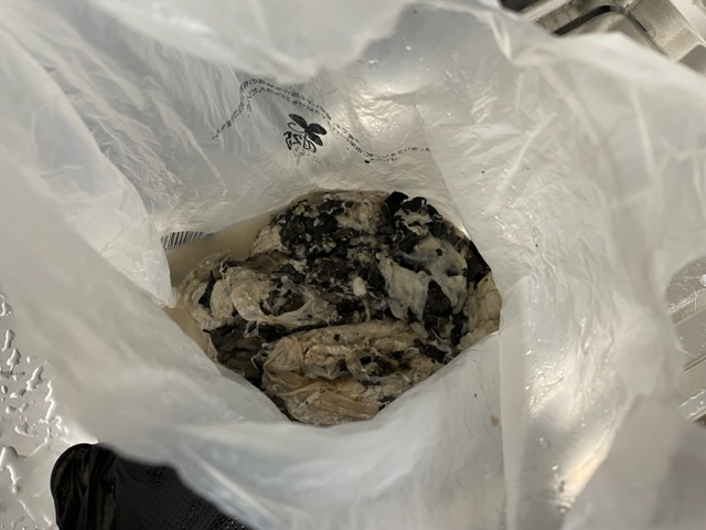 機械本体の中を覗いてみると、薬品や洗浄した際に化合されて凝固した物体が至る所に挟まっていたことがわかりました。