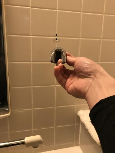 さらに追加でホースを引っかけるラックも壁から取れていたので、こちらも新しいもので取り付けなおしました。