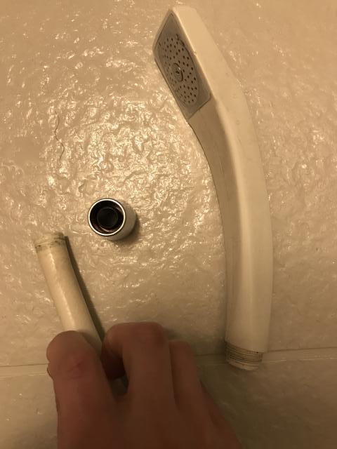 故障個所は、シャワーホースとヘッドの繋ぎ目が破損したことにより分離してしまった症状でした。