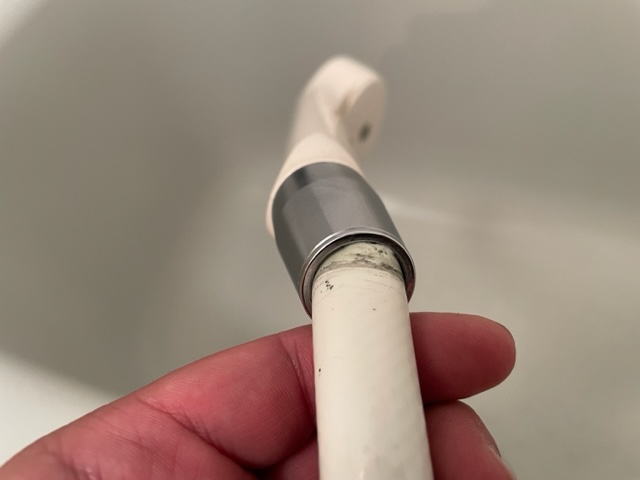 シャワーホースの根本の接着が経年劣化していたため、新しいシャワーホースセットに交換しました。