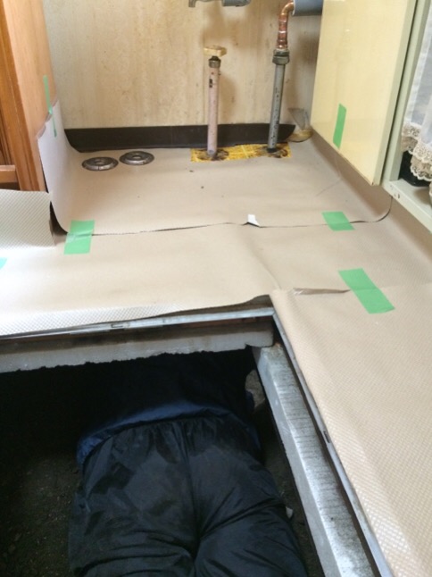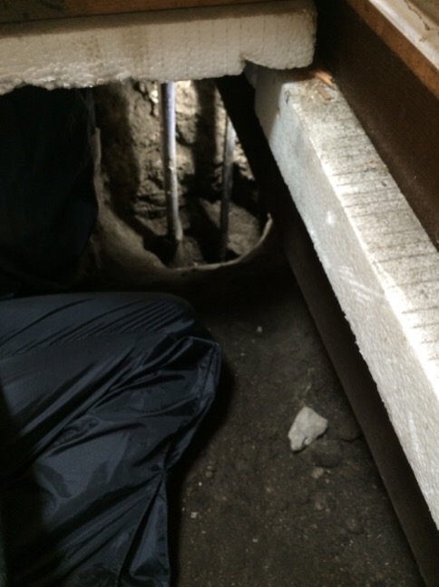 キッチンにある点検口から床下に潜り、閉所恐怖症と闘いながら土をひたすら掘りました。