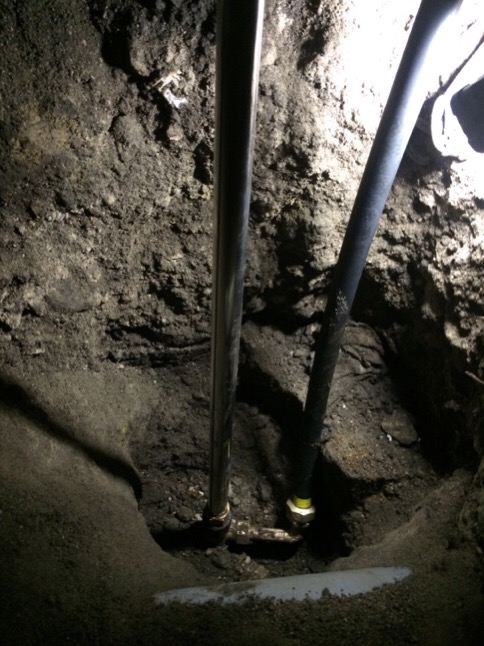 おおよそ1mくらい掘ったところで繋ぎ目が見えたので、管を切り離し、また新しい元栓を取り付けました。