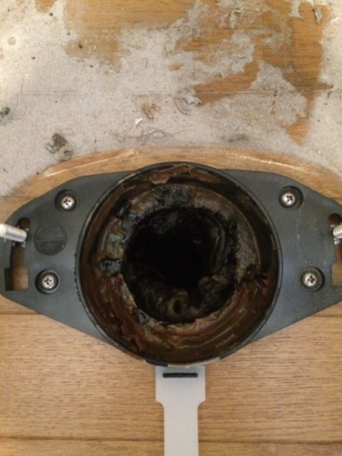 本日は、何日前の深夜にトイレ詰まりでお伺いしたお客様です。その時は、トイレ詰まりなので、いろんな詰まり抜きを試みたのですが改善しなくトイレを外してみるしか次の方法が無かったのですが、トイレを外すならトイレ交換を考えていたらしく、それなら後日で施工をする約束のお客様でした。早速、便器などを外し見ると・・・・|д゚) 得体の知れないゴム状のものが無数に詰まっていました。排水管を覗いてみると排水管側面にも無数にゴム状の物が付いています。取り敢えず、そのままでは駄目なので排水管を綺麗に高圧洗浄をしてから新しいトイレを取付ていき施工終了です。それにしても原因不明のゴム状の物体・・何なのか・・・”(-“”-)”