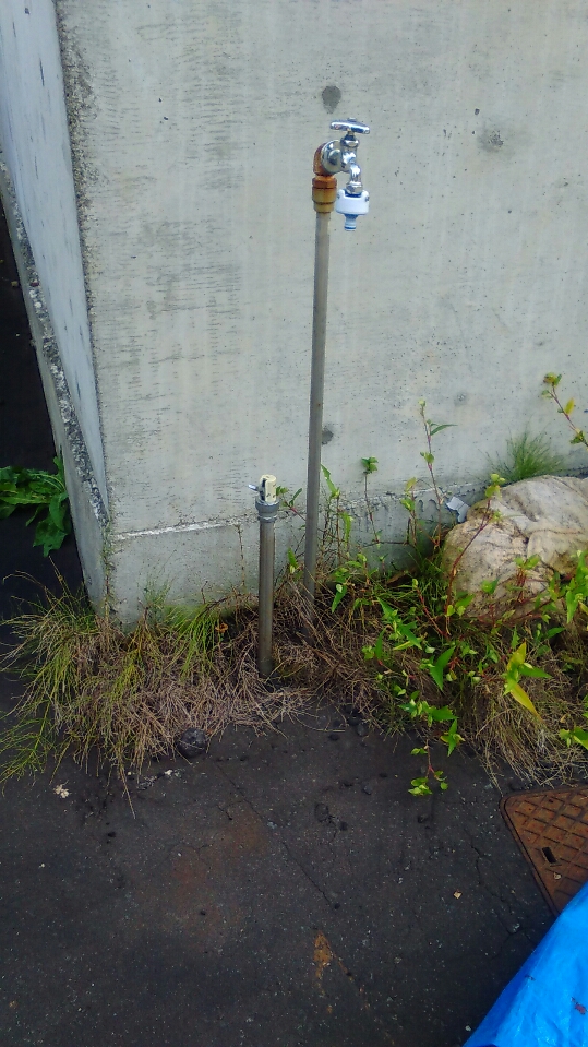 親の家らしく倉庫の前で使ってた散水栓のようでした。雪が降る前に何とかしてほしったらしく凍結して破裂するのを恐れていました。