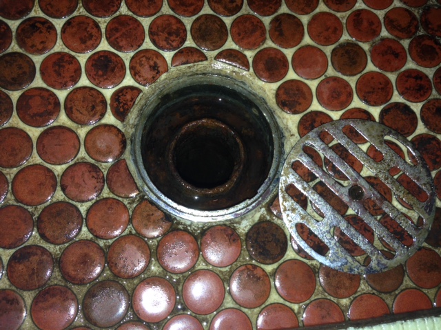 本日は浴室が臭くてたまらんと言う事で呼ばれました。拝見させて貰うと排水口の蓋が錆びて溶けて無くなっていました。