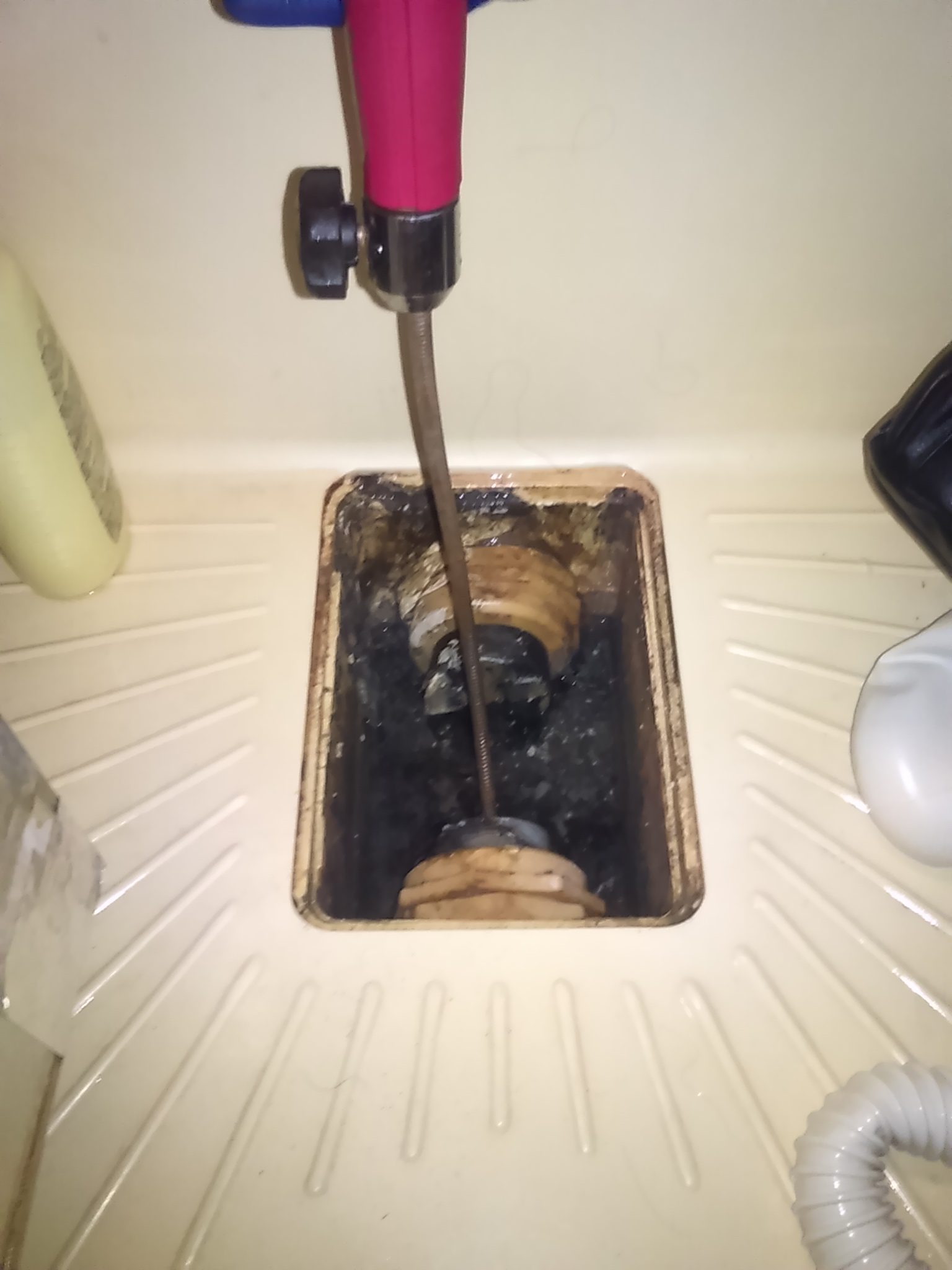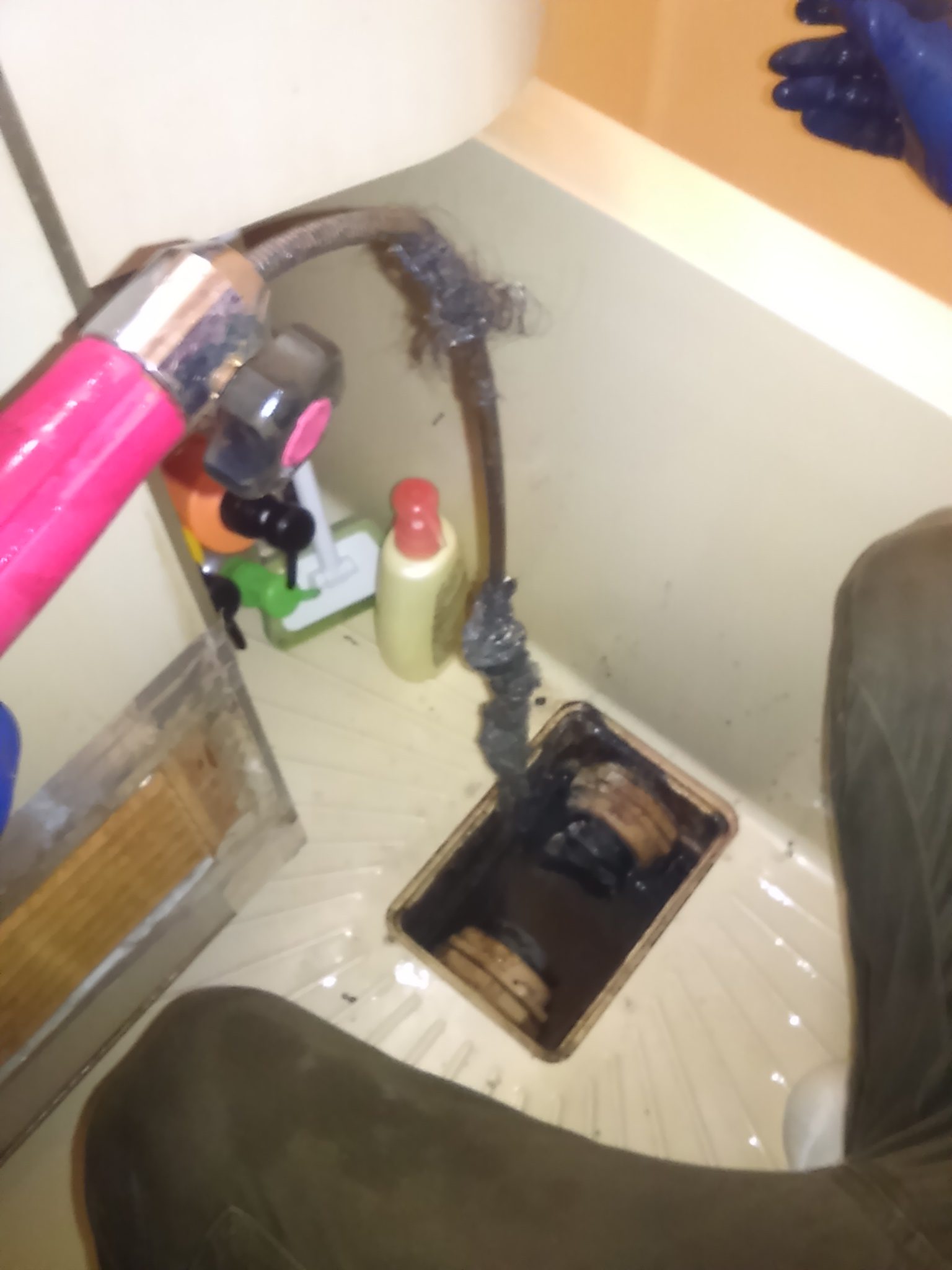 本日は、アパートの大家さんより階下漏水しているとのご依頼があり出動しました。漏水があった1階のお部屋にお伺いしてみると漏水は止まっているようで入居者様にお話しを聞くと原因は2階の洗濯排水が溢れたのではないかとのことです。2階のお部屋にお伺いして点検した結果、洗濯排水を流した時に台所の排水から溢れてしまったようです。古いアパートなので洗濯専用の排水口がなくお風呂場に洗濯排水を流しているようなのでお風呂場の排水口からトーラーで作業してみるとトーラーにゴッソリと髪の毛や油が絡まって取れました。これだけの量の髪の毛が詰まっていると排水が詰まるのは当たり前ですね。入居者の方に髪の毛が排水に流れないようネットを置くなどの処置を説明して完了です。