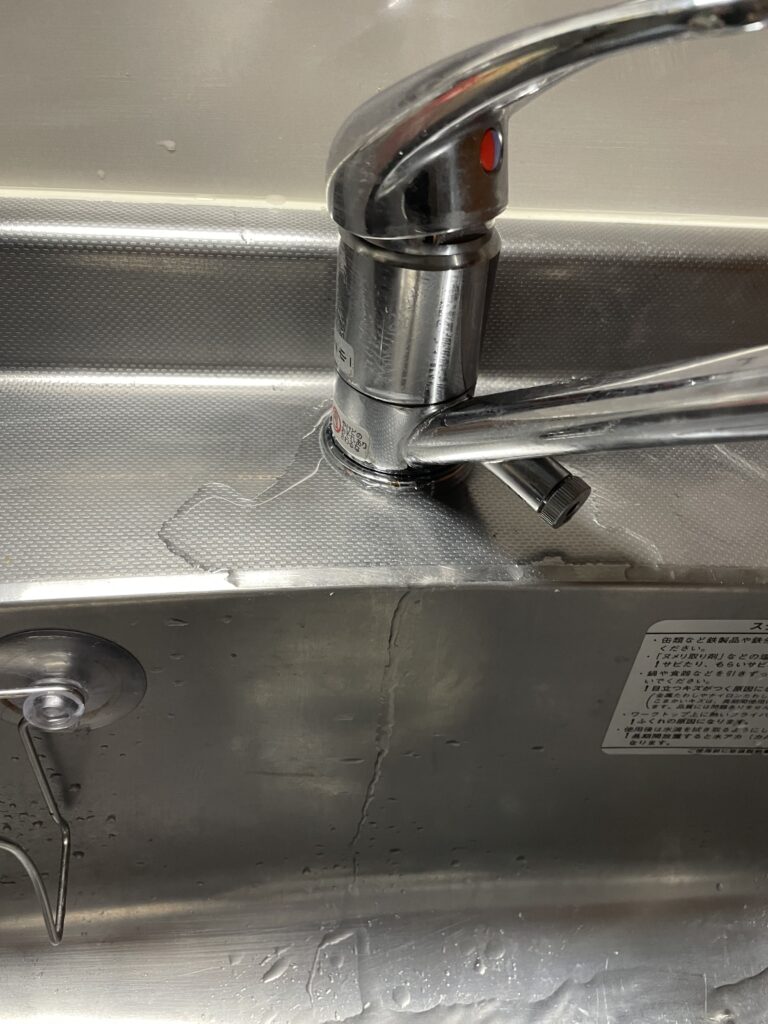 キッチンの混合栓根元より水が漏れていると依頼がありました。