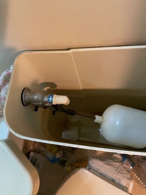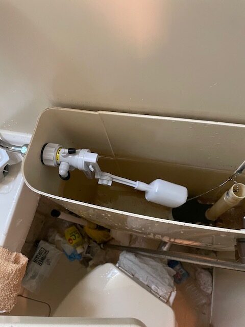 ボールタップの水の止まりが悪くなっており水が流れ続けている状態でした。