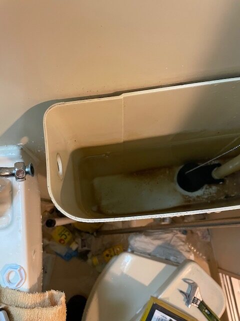 トイレのタンクの中からポタポタ水が落ちている音がするとのこと。