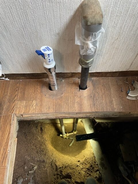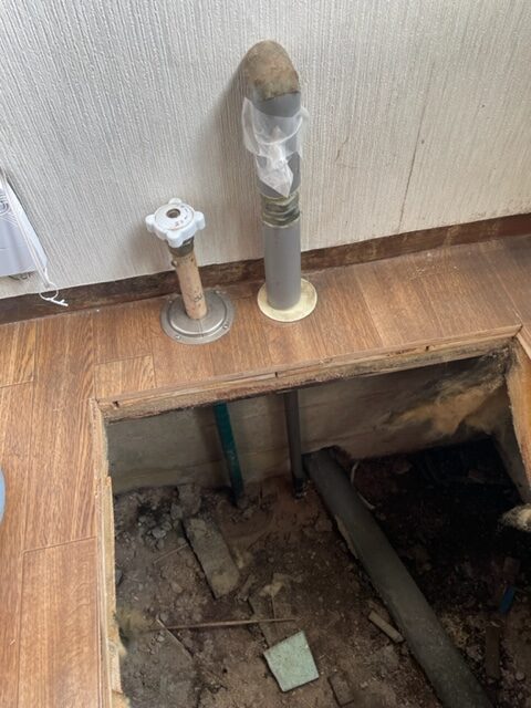 お写真にはないですが、床を閉口する際に点検口に変更の施工をして、作業終了しています。