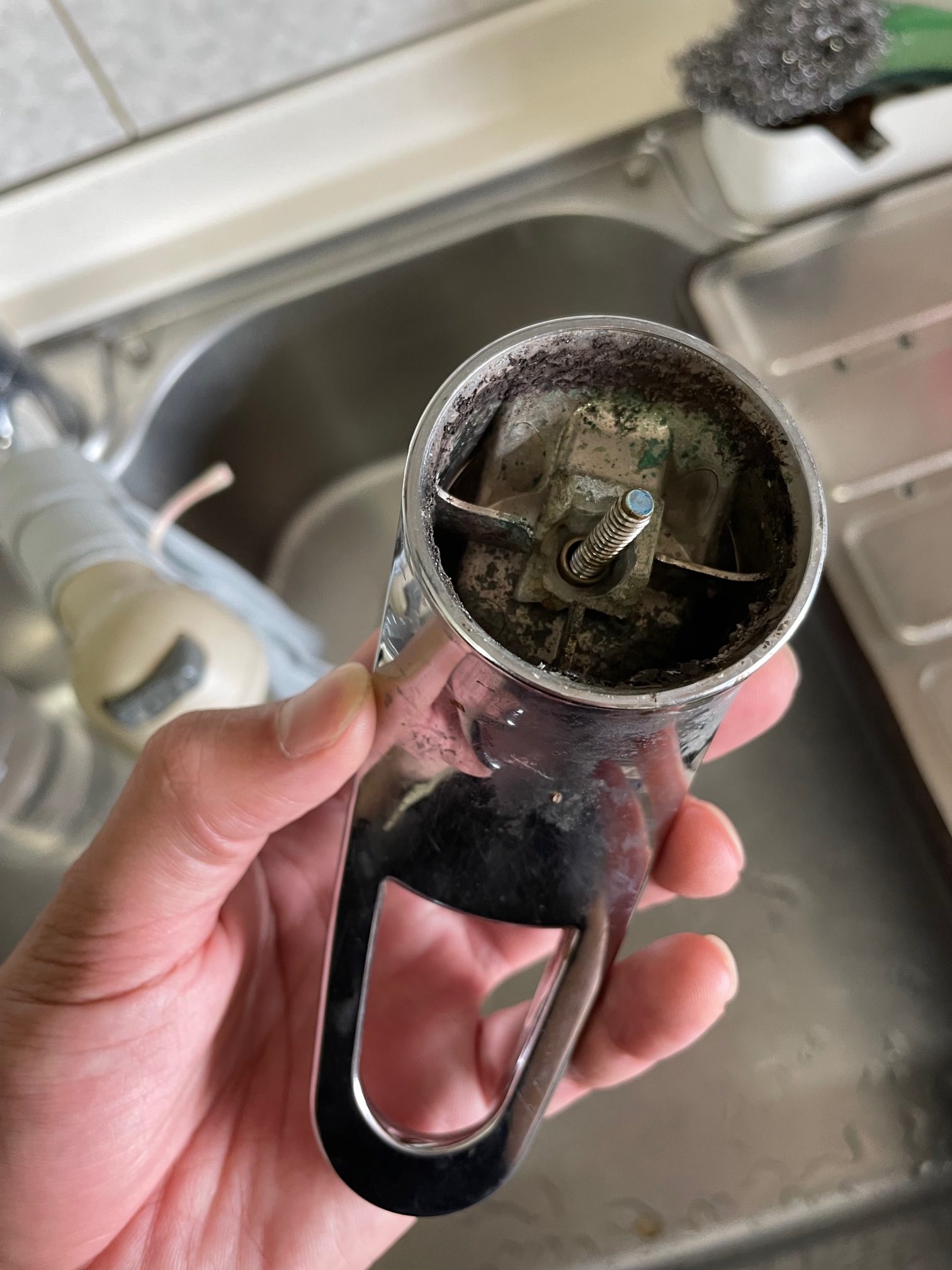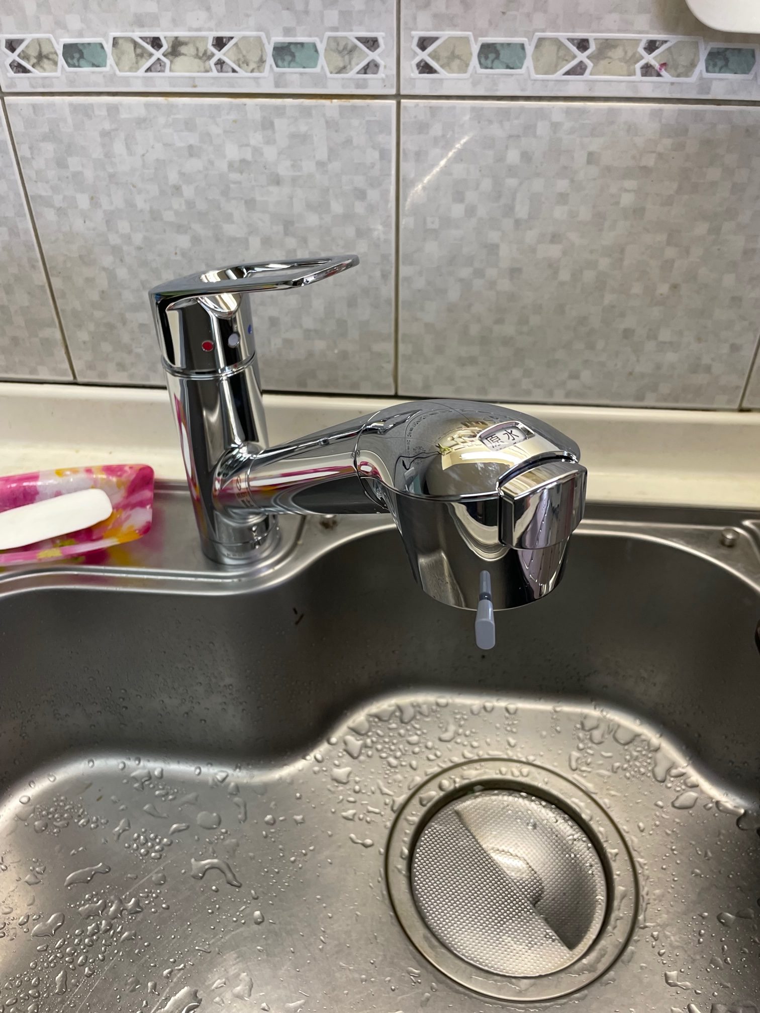 台所の混合栓のレバーを上げようとすると抵抗がかかってしまい、水を出すことができず困っているとのことです。