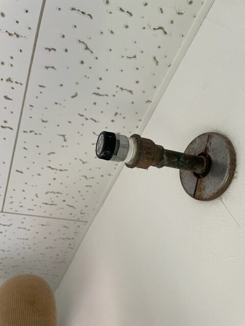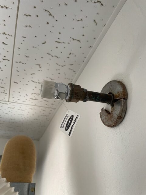 壁から出ている配管から水がポタポタ漏れてきているとのこと。
