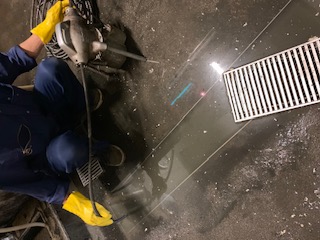 店舗を管理している方にお話を聞いたところ何か特別なものなどは流しておらず普通に使っていたところ詰まったとの事でした。詰まり方を見てみると詰まっている場所が倉庫内からかなり離れた場所だと考えられましたので手持ちの道具などでは対応することは難しいと思い、会社に戻り専用の機械を使うことにしました。
