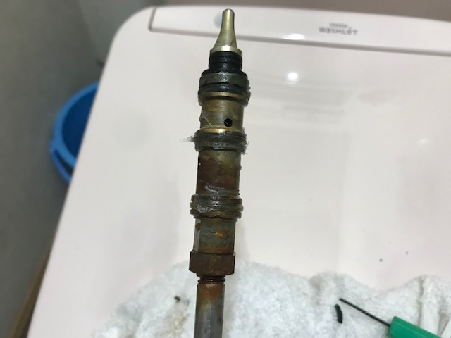 水抜栓のシャフトを取り出してみると、先端のピストンについているパッキンが粉々でした。