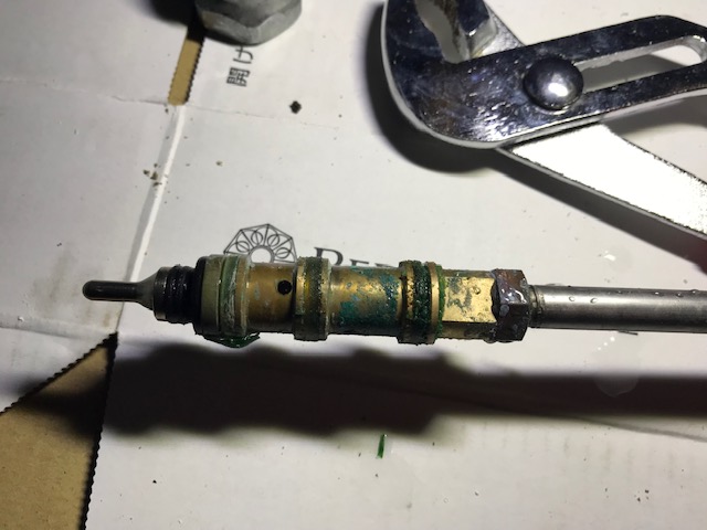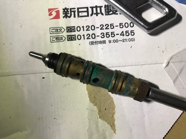 原因はピストン部分にあるパッキンが劣化により粉々になっていたため、こちらを交換して症状は改善しました。