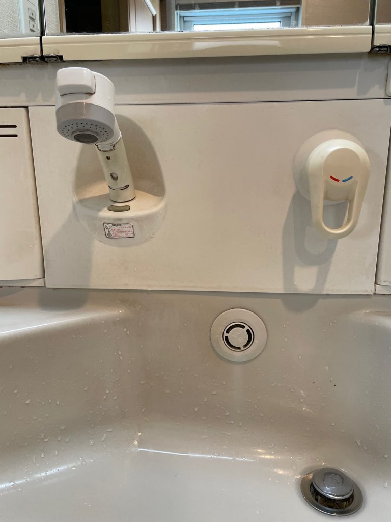 本日は、メーカー様からの依頼で洗面化粧台の水栓の修繕でお伺いしました。