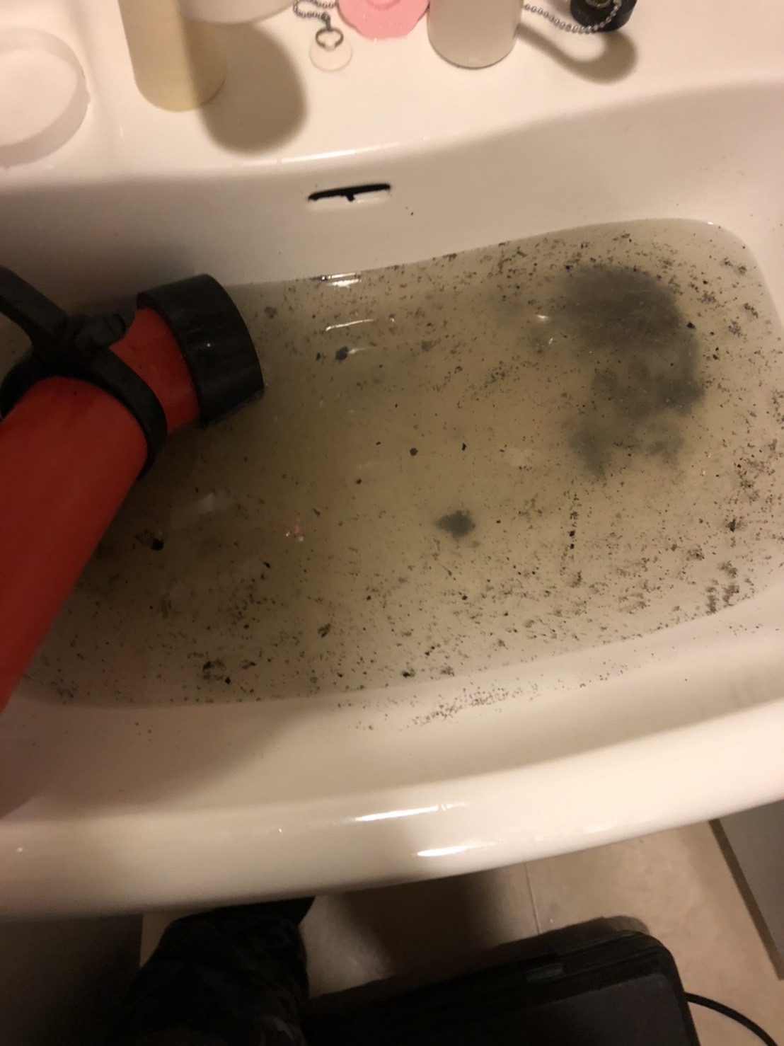 本日は、洗面台の水が流れなくなったと一戸建てにお伺いしました。