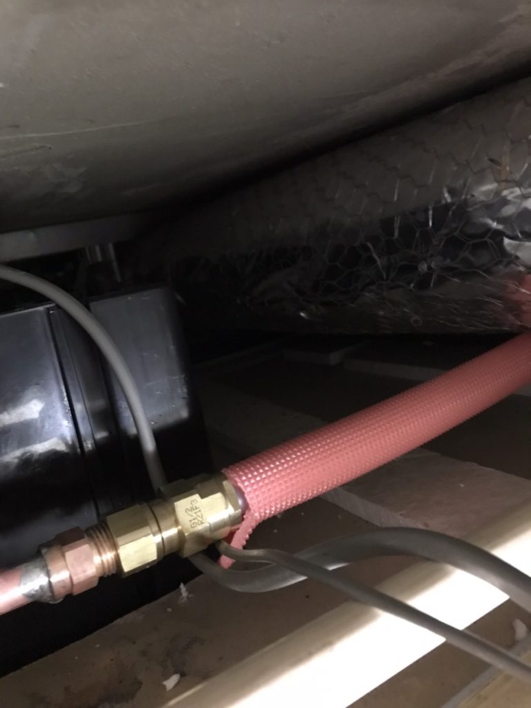 一旦天井裏から配管を外し、新たに架橋ポリにて配管を接続し直し、蛇口を取り付けて完了です。