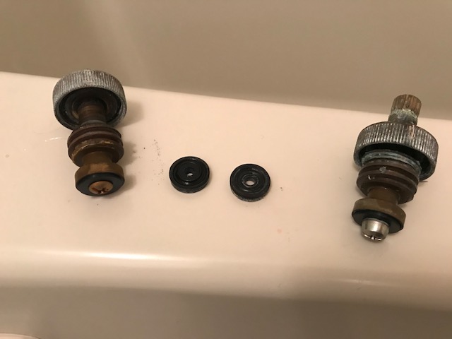 ハンドルを取り外して部品を解体し、原因となるコマパッキンと呼ばれるものを交換し症状は改善しました。