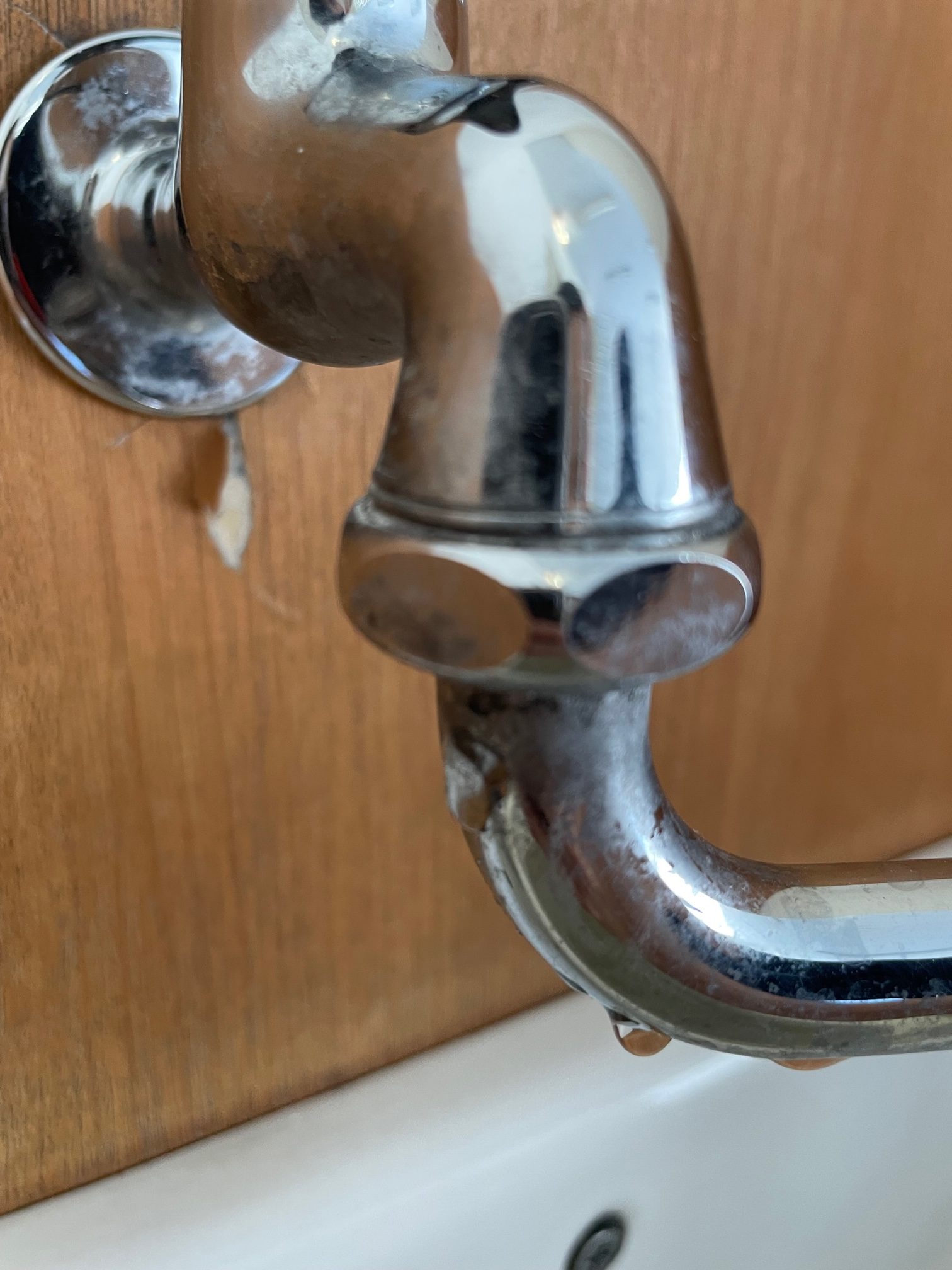 蛇口の水を出すとパイプの根元からポタポタ水漏れしてくる状態