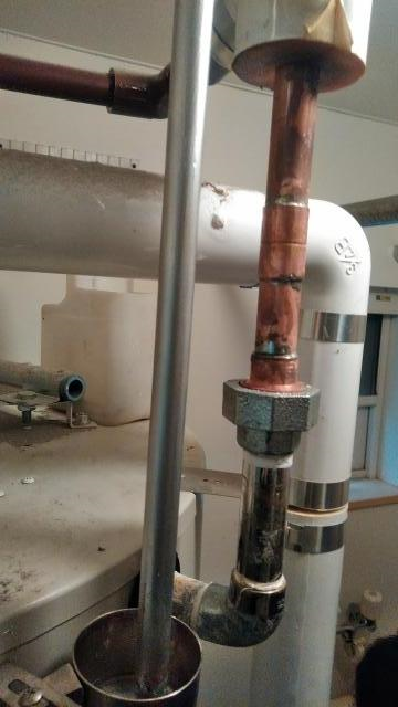 本日は、電気温水器周辺の配管から水漏れしてくるとのことでお伺いしました。