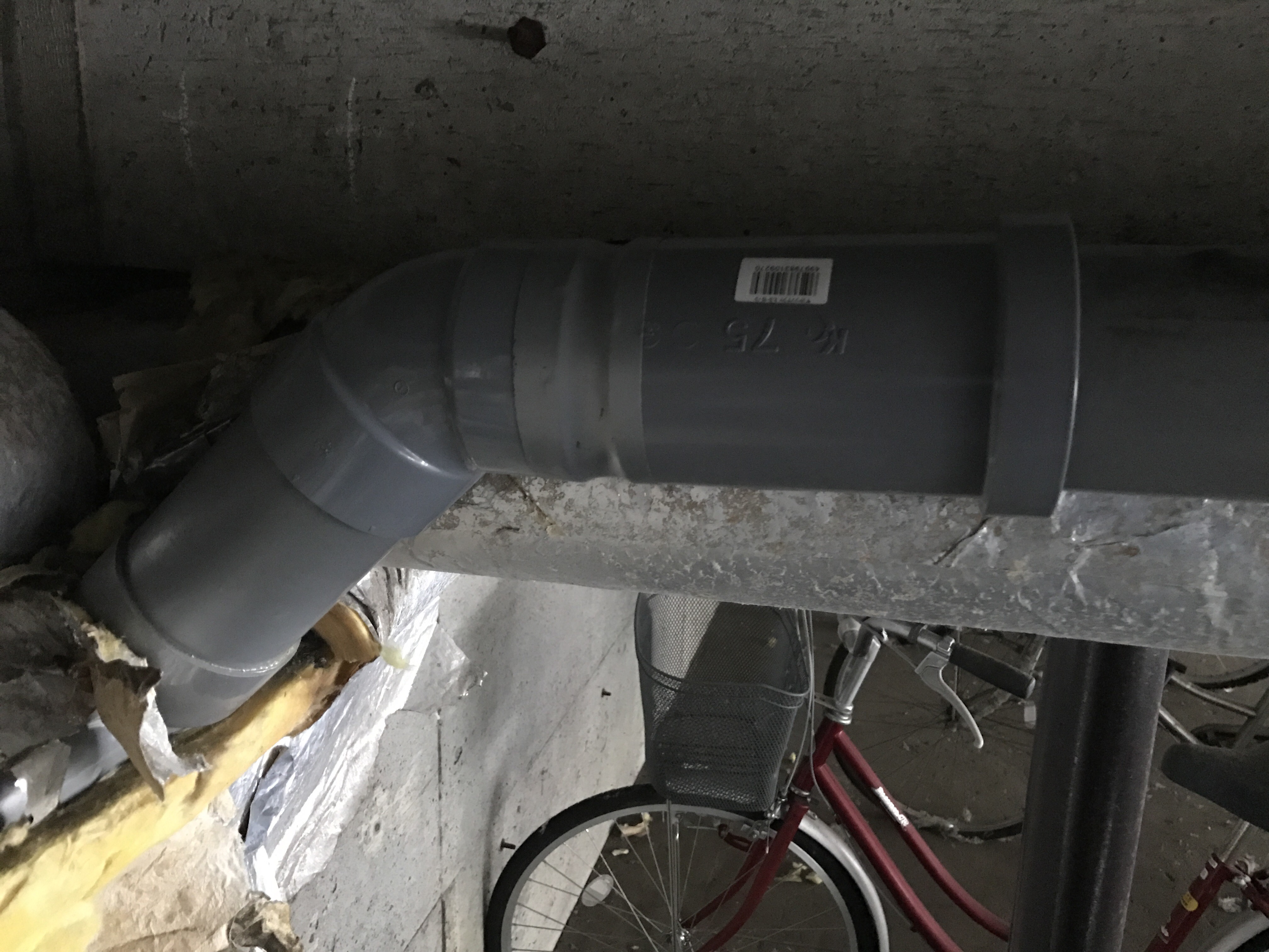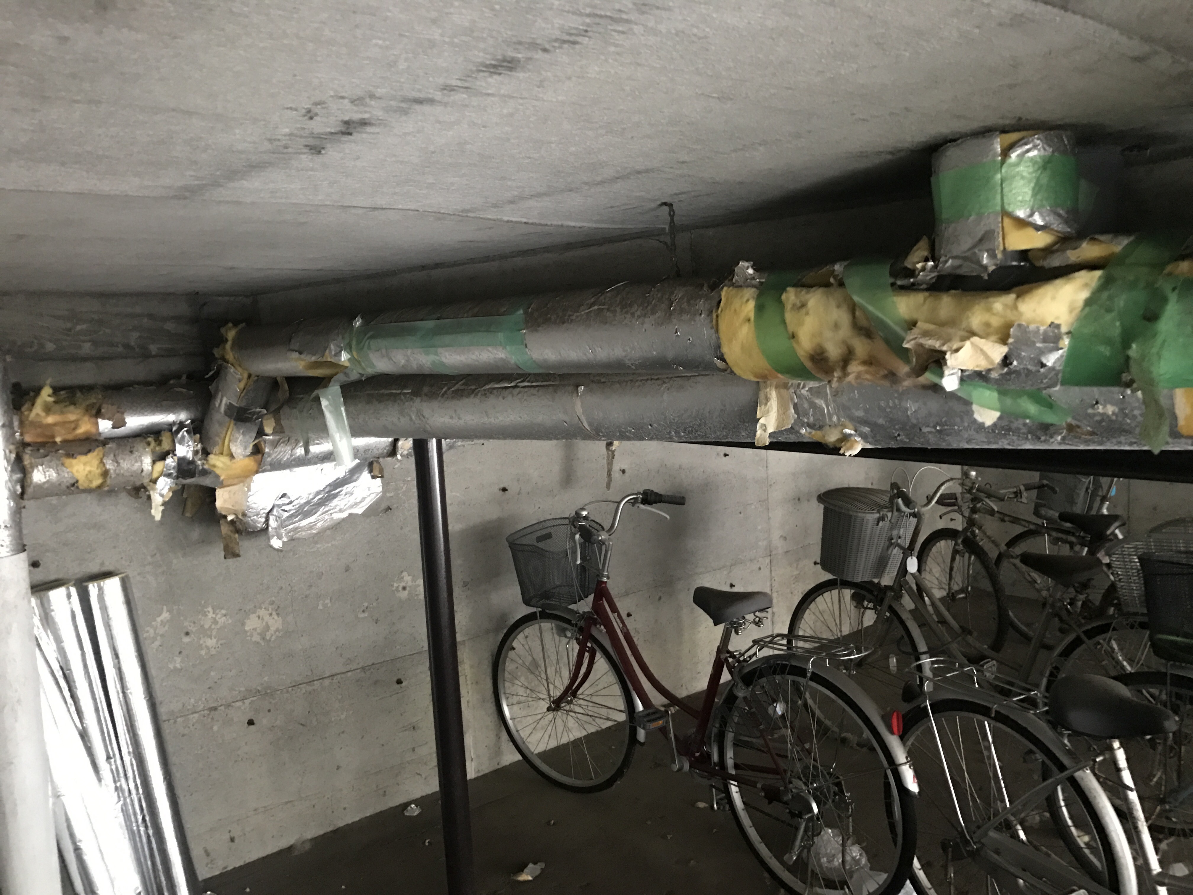 本日は、提携先の管理会社からアパートの排水管の勾配直しの依頼があり出動しました。2月ごろにお風呂場の排水管が凍結して解氷作業を行った現場で、その際に調査した結果、排水管の勾配が逆勾配になっていることが判明しました。配管を切断後、勾配を取って配管を元に戻すのですが、既存の配管を接着する際は配管に『遊び』がないため特殊な継手を使用して配管を繋ぎ合わせます。保温材も年数が経ってボロボロなので一緒に交換しました。今年の冬は寒波の影響で、この様な排水管の凍結の依頼が例年に比べて多かったですね。