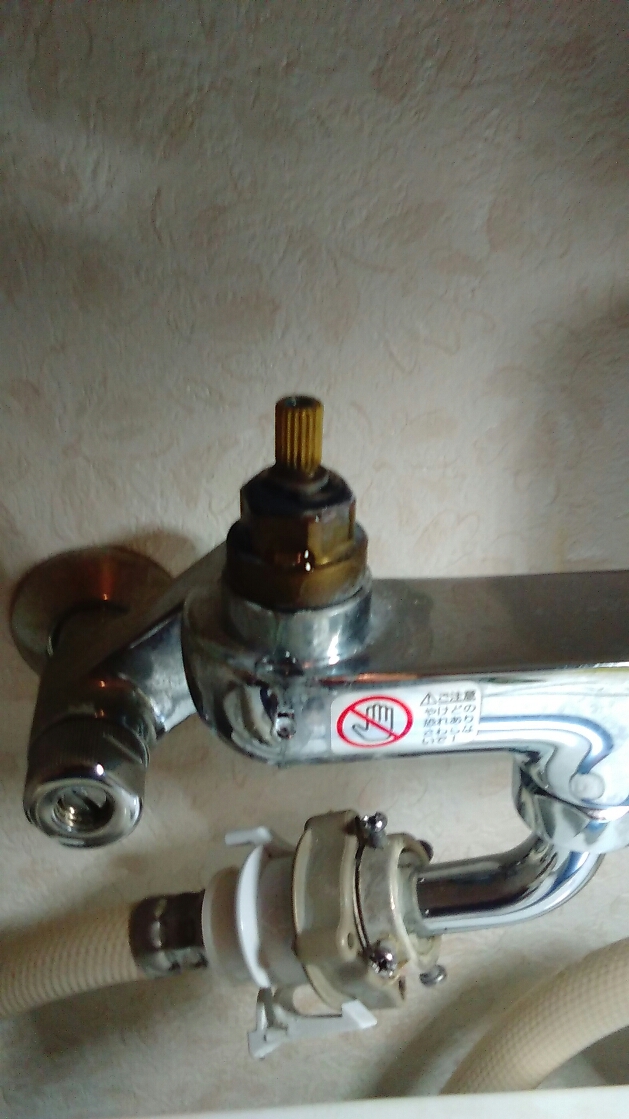 今日は提携企業からの依頼で洗濯蛇口のハンドルの根元から水が漏れているので見てほしいとの依頼で行って来ました。拝見すると良く