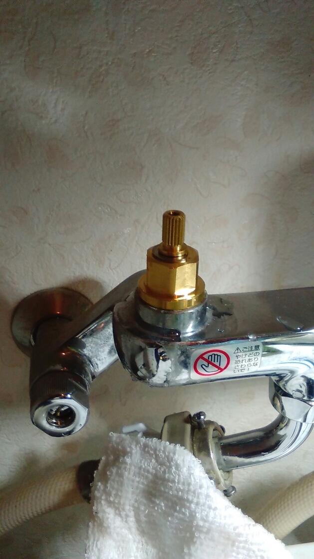 あるのがハンドルの中の三角パッキンというゴムの劣化で漏れる事が多いのですが今回はそのタイプではなくハンドルの本体(スピンドル)