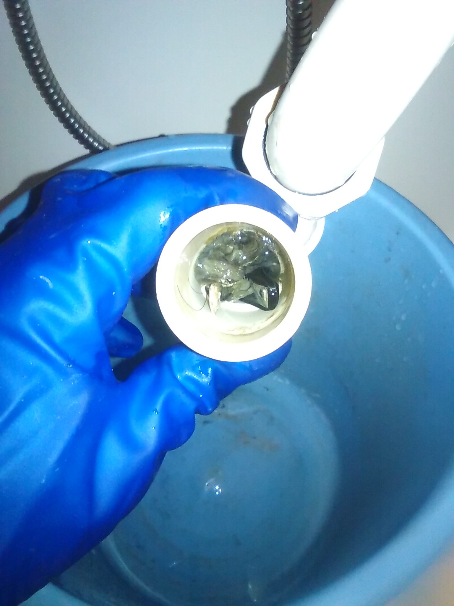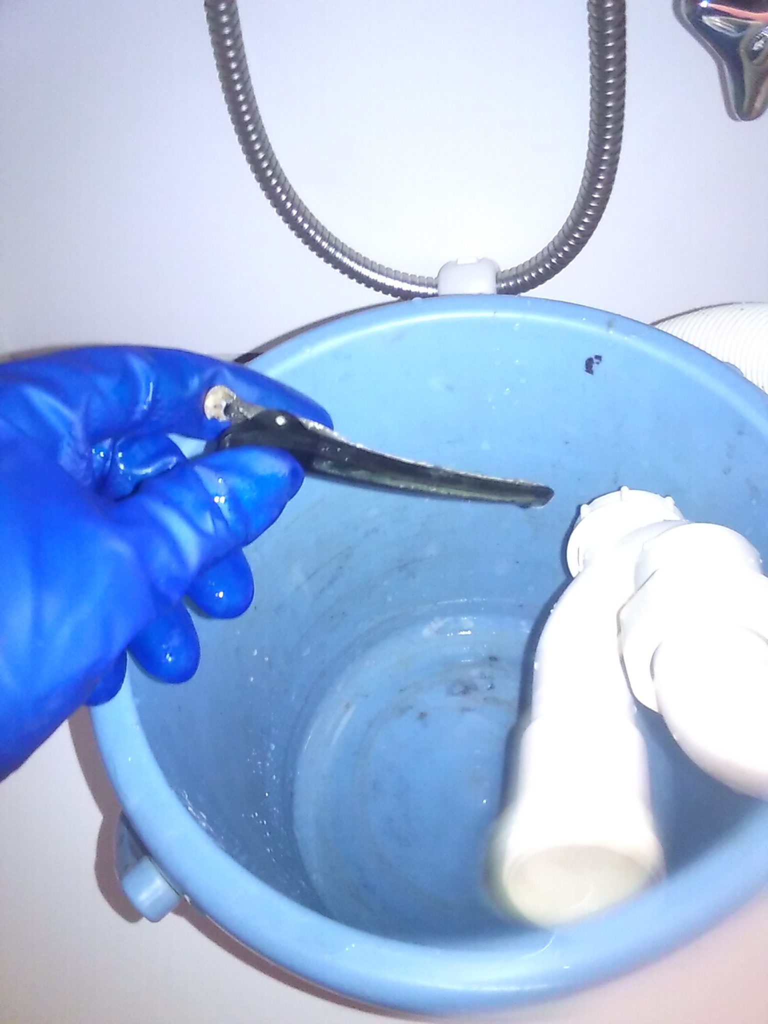 本日は管理会社様からのご依頼で洗面所の排水詰まりのご依頼に対応しました。点検してみると、かなり流れが悪いです。心当たりはないようなので、先ずは排水トラップを外してみます。するとトラップ内に何か固形のものが詰まっているため取り出してみるとヘアピンが詰まってました。知らない間に流してしまったようですが、洗面の排水口にはゴミ受けが必ず付いていて、このような大きい物は通常流れないようになっています。時折ゴミ受けを外して使用されている方を見ますが、ヘアピンやコンタクトケースなどが流れてしまうことがありますのでゴミ受けを掃除以外は外さないようにして下さい。