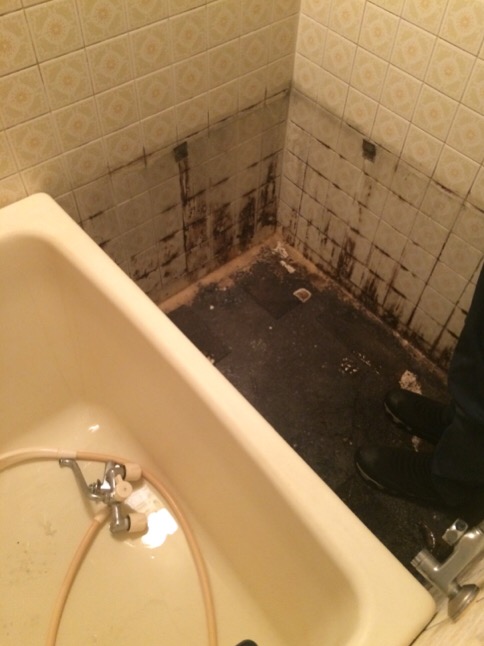 本日は、アパートの大家さんから階下漏水の依頼があり出動しました。1階テナントの天井から水漏れがあるとのことなので早速点検。天井を開口して漏水箇所を探します。どうやら上の階のユニットバスからの水漏れのようです。2階のユニットバスの浴槽を外してみると腐食でユニットバスの壁に亀裂が入っており、そこから水が漏れているようでした。コーキング等でユニットバスの壁を補修、1階の天井も元通りに修復、今後のことも考えて天井に点検口を設置しました。当社では天井井修復等の内装工事・大工工事等も行っており、トータルでお客様の『お困り』に対応させていただきます。