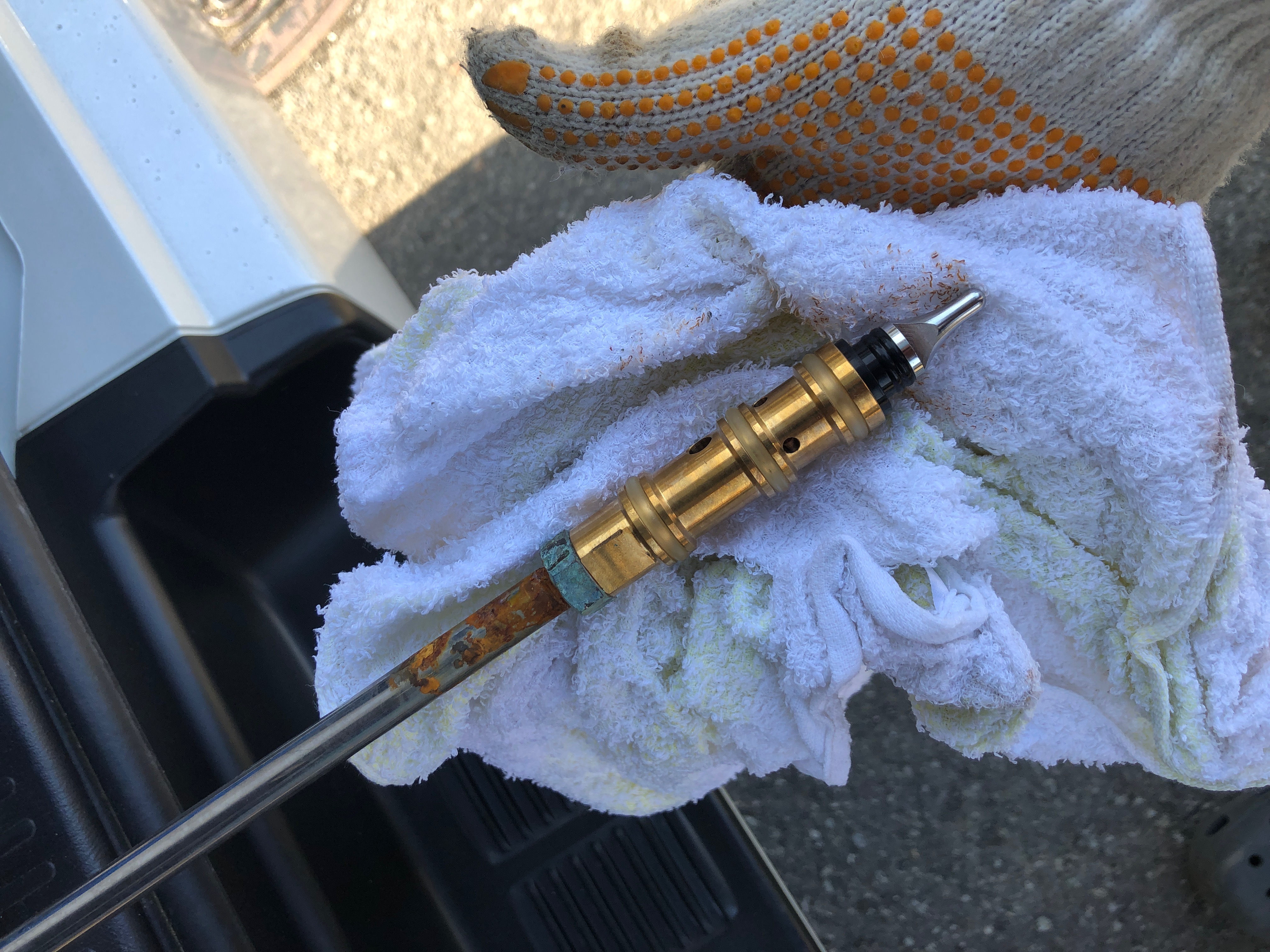 今回は、ピストン本体が悪かったため、ピストンごと交換いたしました。元通りにしてからメータを確認し、しっかりと止まっているのを、お客様にも確認してもらい作業完了です。