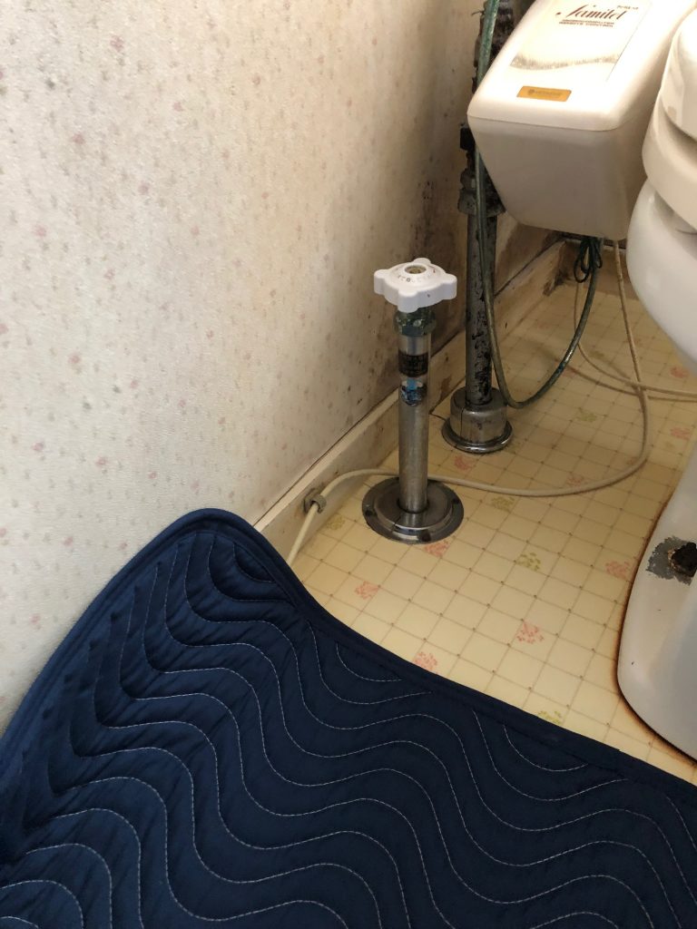 早速、約束の時間になり訪問させていただき、水道メーターを確認!確かに家の水をどこも使用してないのにメーターが回っていますね。トイレの水抜き栓と言うことでトイレの水抜き栓を