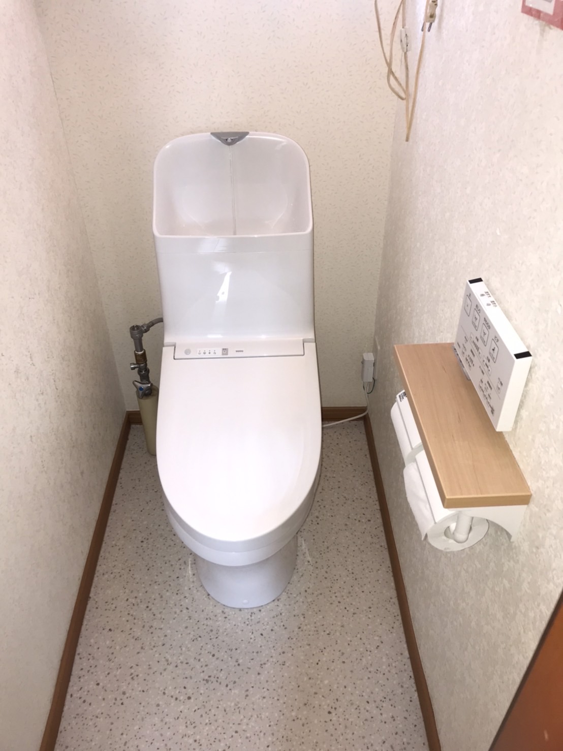 温水洗浄便座はリモコン式がご希望とのこともあり、標準でその機能がついている一体型トイレにて交換作業をしました。