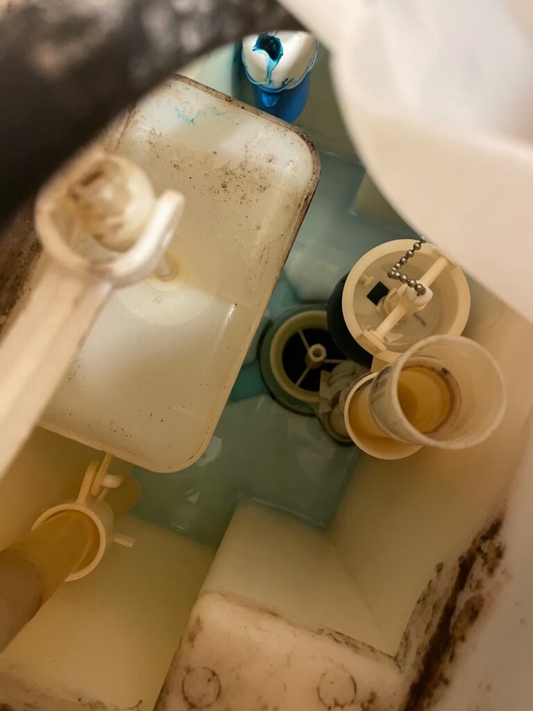 タンク内を点検すると、ゴム玉のストッパーが劣化により外れていたため